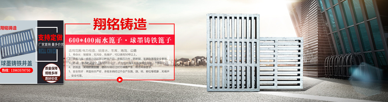 山東翔銘金屬制造有限公司擁有雄厚的技術(shù)力量,設(shè)備齊全,檢測手段完善,管理方法科學(xué)。隨著改革開放的不斷深入,市政建設(shè)正日新月異地飛速發(fā)展,本廠愿積極的態(tài)度為城市建設(shè)現(xiàn)代化做出應(yīng)有的貢獻(xiàn)。球墨鑄鐵井蓋,雨水鑄鐵篦子,車庫篦子,排水溝蓋板,球墨鑄鐵篦子具有優(yōu)良的耐腐性能,強(qiáng)度高,抗強(qiáng)壓,抗挫,抗拉,抗沖擊及承載能力強(qiáng),防盜,安全等優(yōu)點(diǎn)。使用說明經(jīng)過國家化學(xué)建材質(zhì)量監(jiān)督檢驗(yàn)中心及質(zhì)量技術(shù)監(jiān)督檢驗(yàn)研究院的化學(xué)檢測,技術(shù)指標(biāo)可長達(dá)50年之久,球墨鑄鐵井蓋是市政建設(shè),城市綠化的選擇。多年來,本廠產(chǎn)品暢銷省內(nèi)外,質(zhì)量可靠,售后服務(wù)完善,深受廣大用戶的好評。